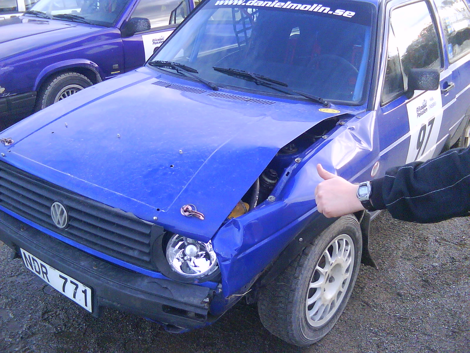 Målgång i Rikspokalen med en lätt modifierad front. Någon