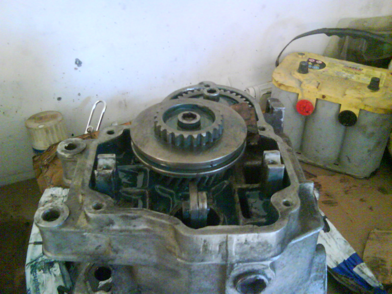 Växellåda på väg att plockas isär